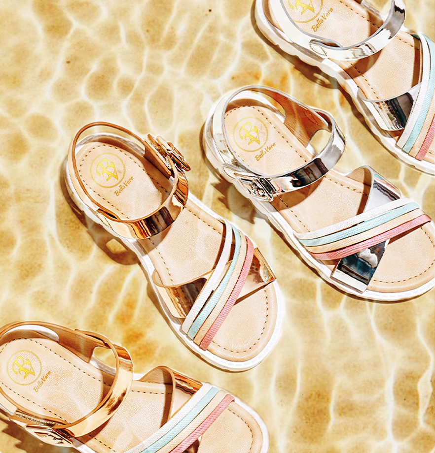 BellaVara 繽紛金屬彩虹涼鞋-香檳