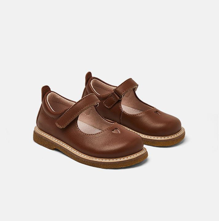 BellaVara英倫風全真皮款愛心簡約公主皮鞋-焦糖咖啡