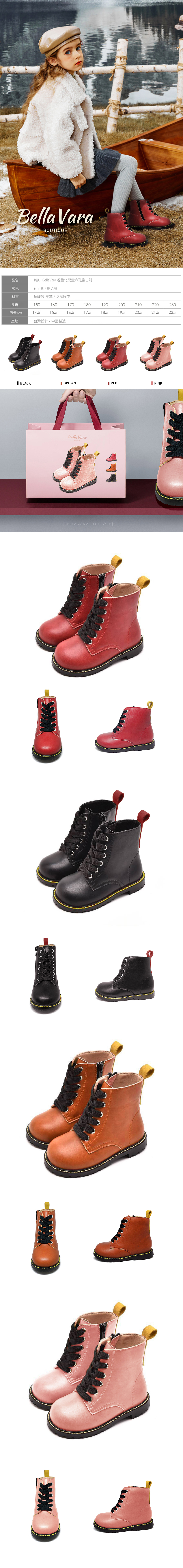 BellaVara 輕量化兒童六孔復古靴-紅