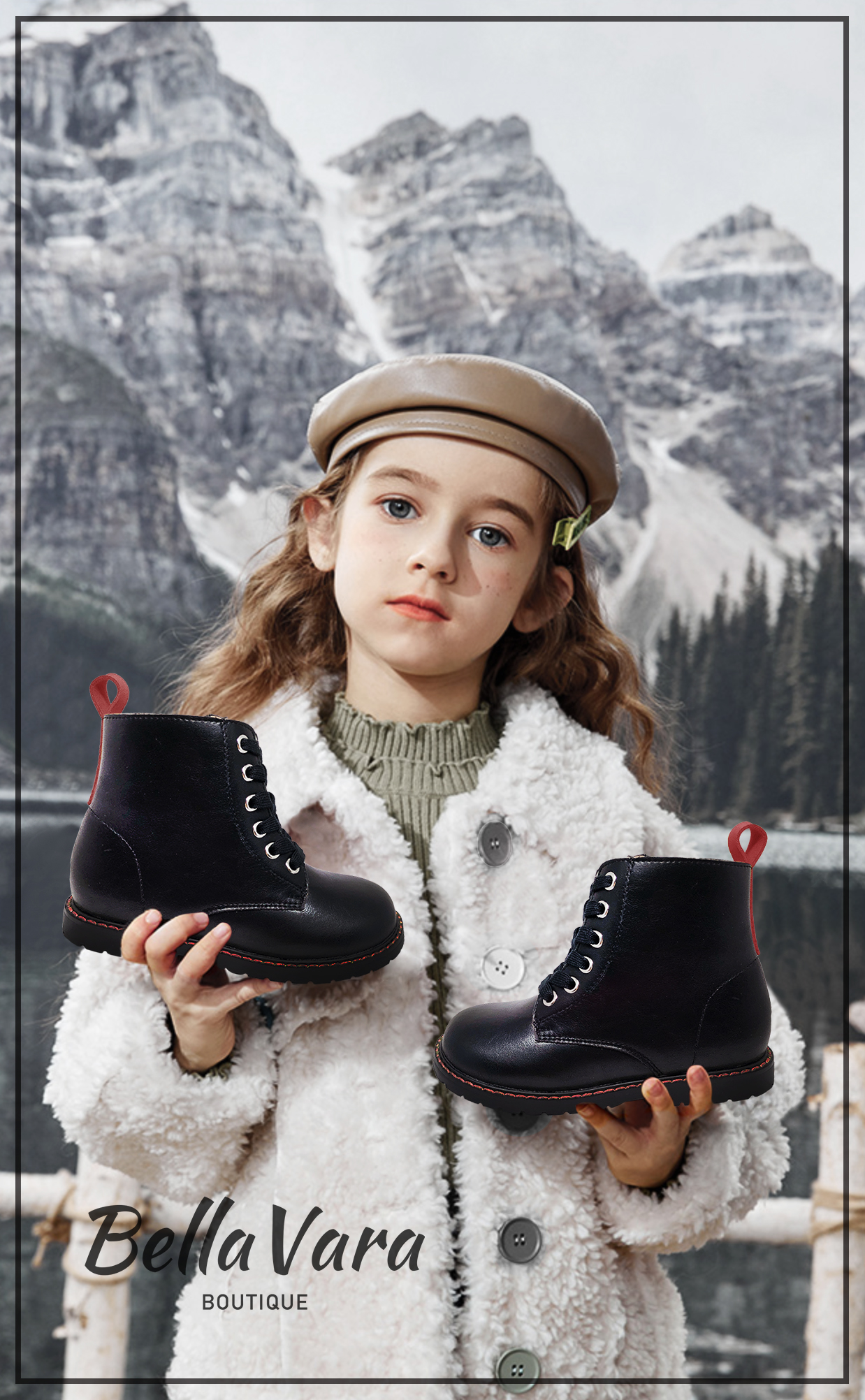 BellaVara 輕量化兒童六孔復古靴-黑